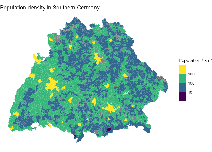 ggtitle("Population density in Southern Germany") +