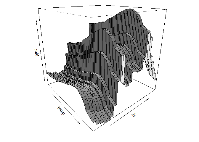 persp(mid_1$fit, "temp:hr", theta = 50, phi = 20, shade = .5)